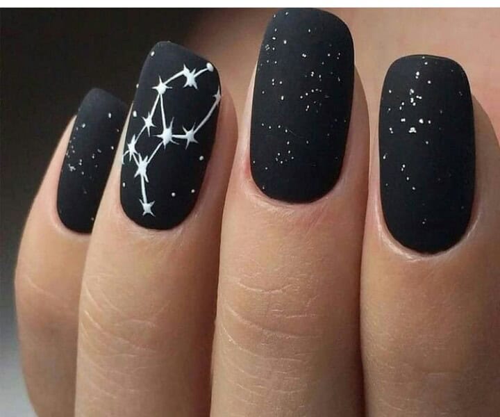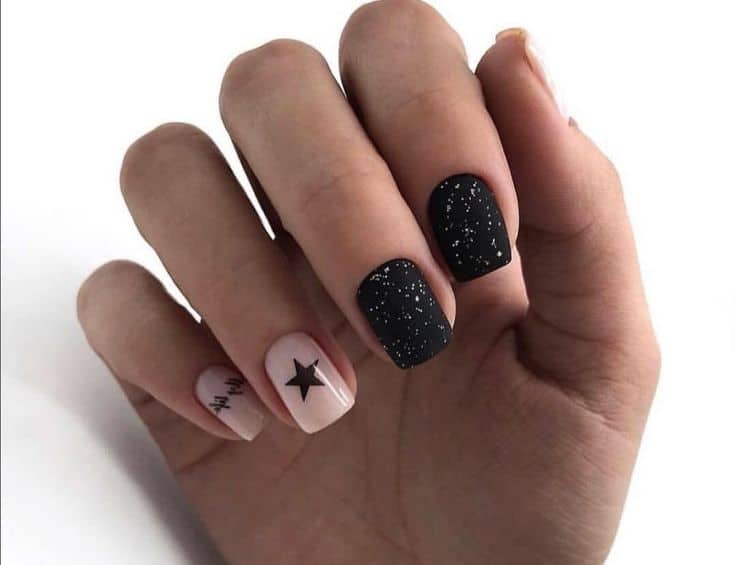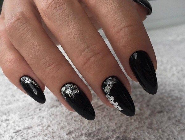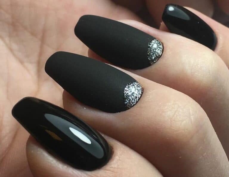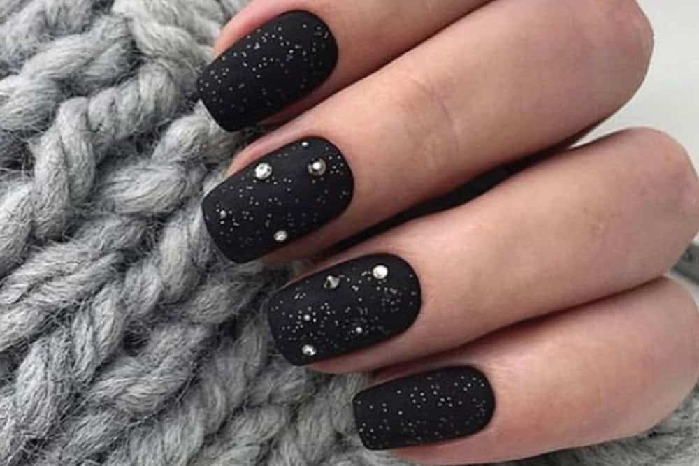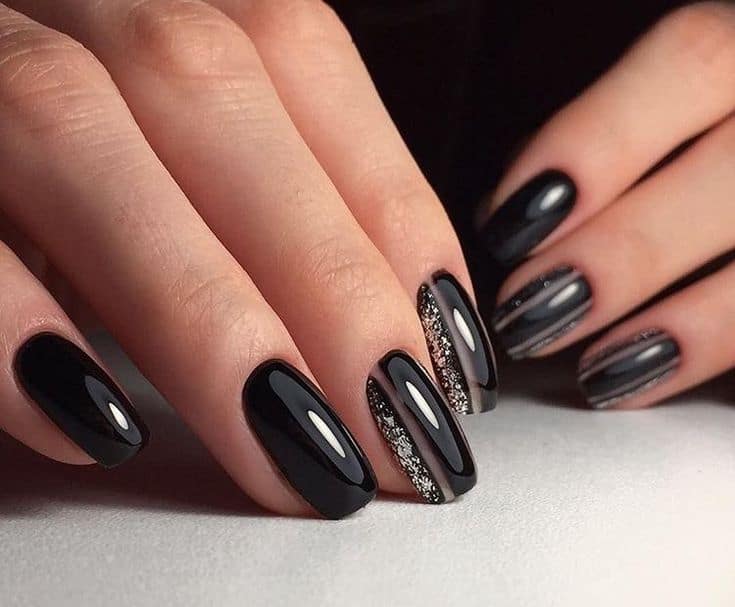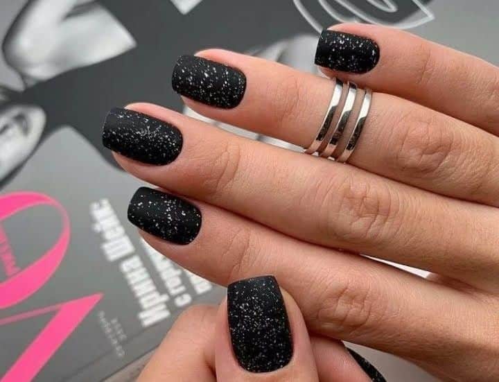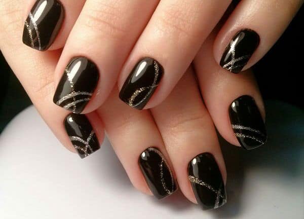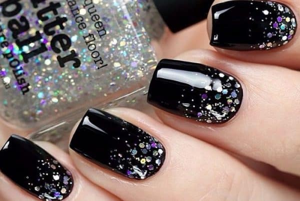 Wzory na czarne paznokcie z brokatem