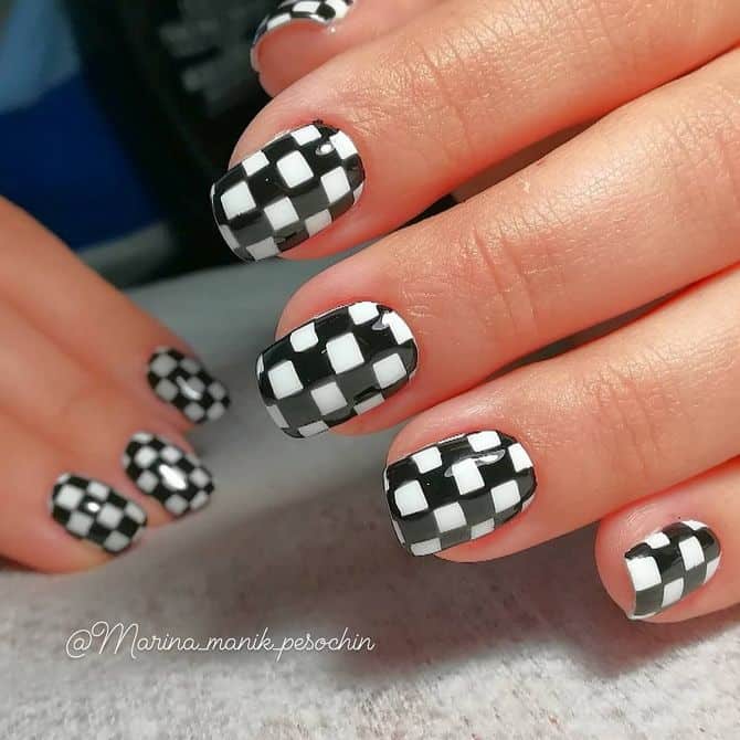 Modne paznokcie w szachownic – nie tylko czarno białe