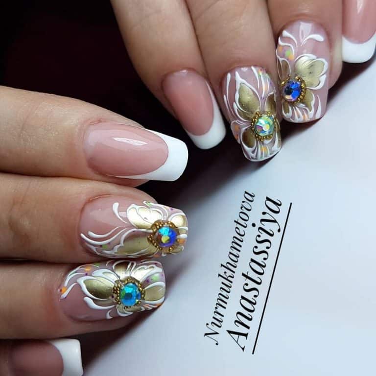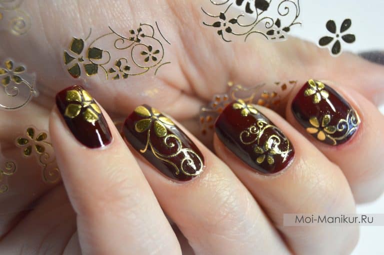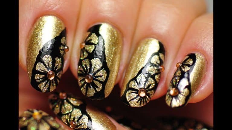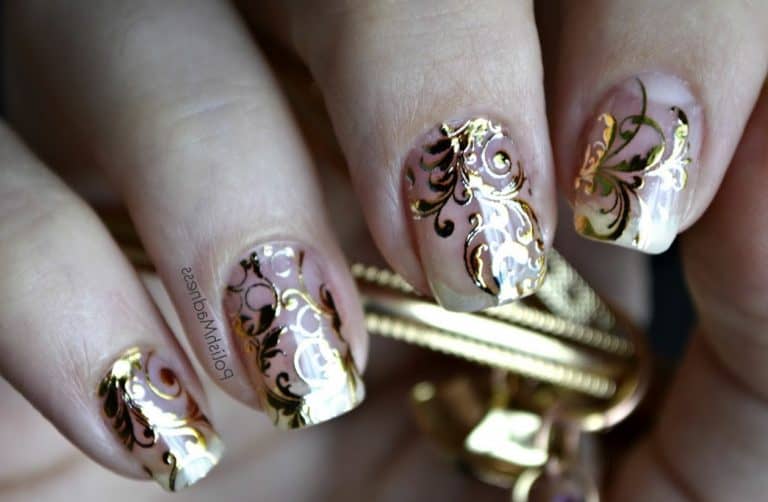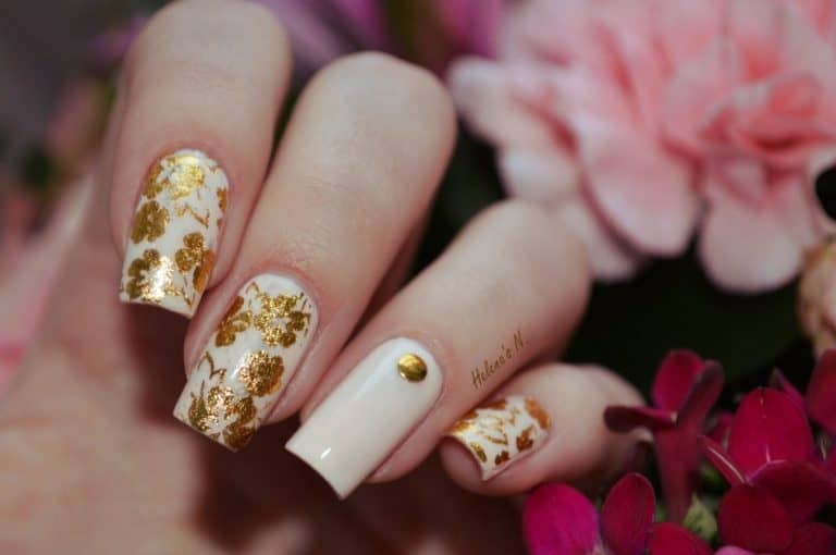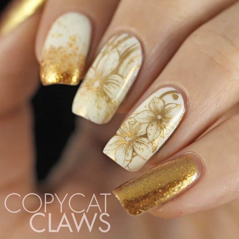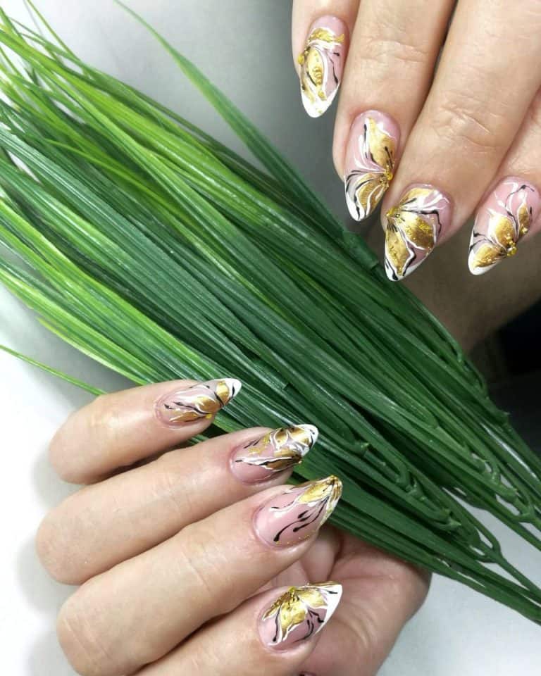 Powalające wzory na paznokcie ze złotymi kwiatami
