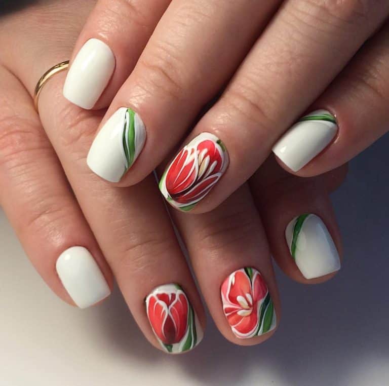 Wzory na kwiatowe paznokcie hybrydowe