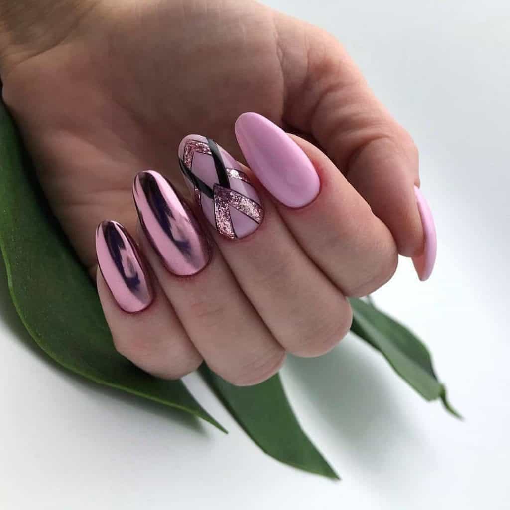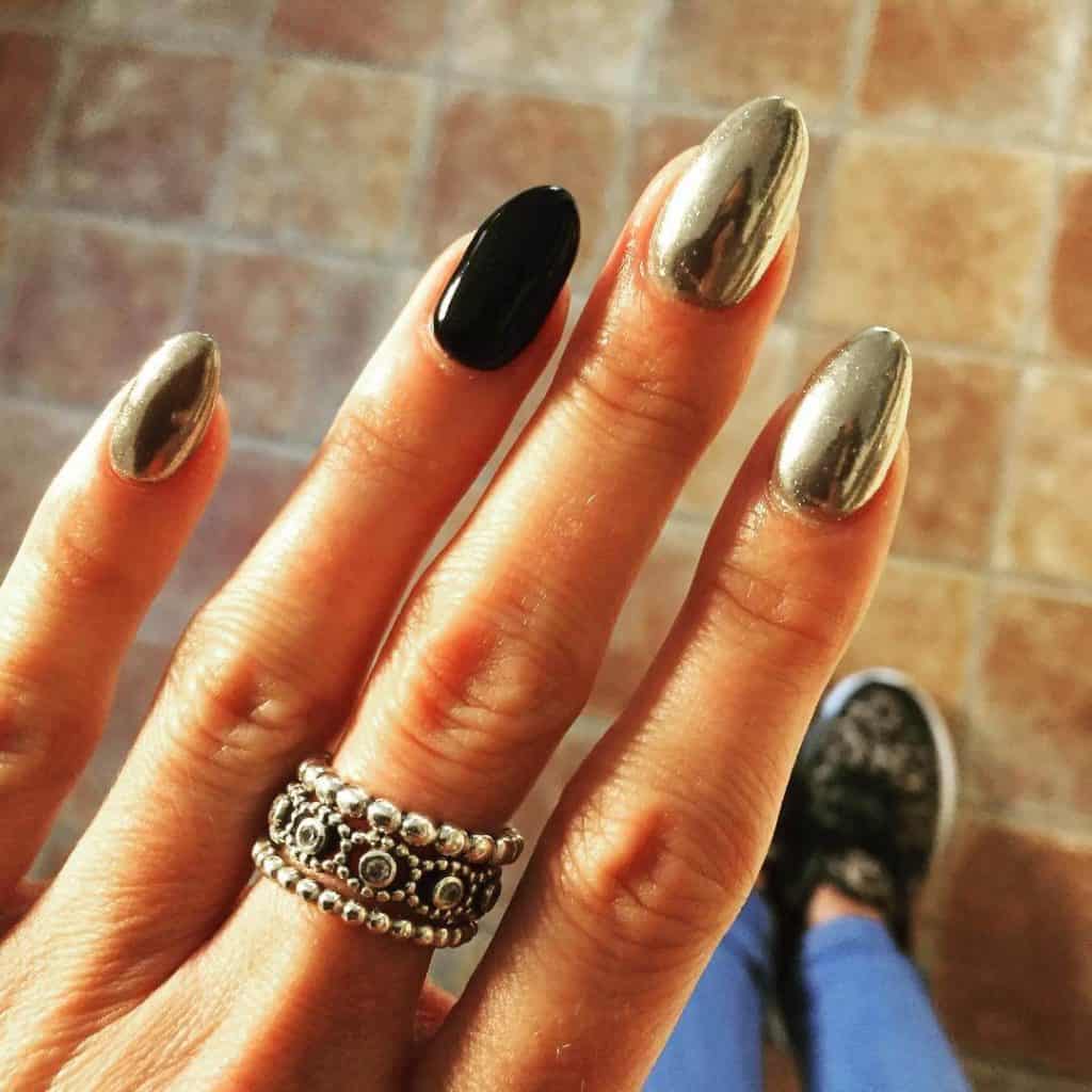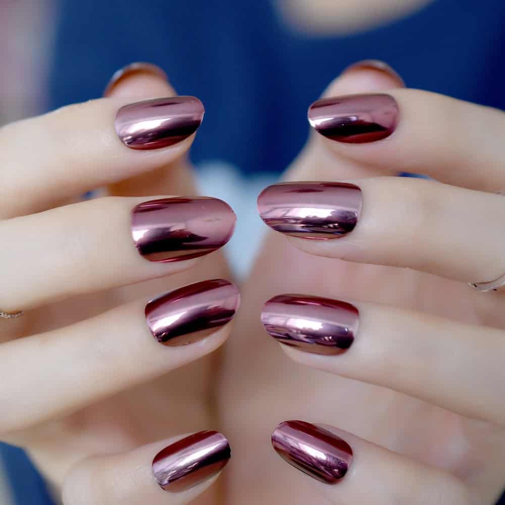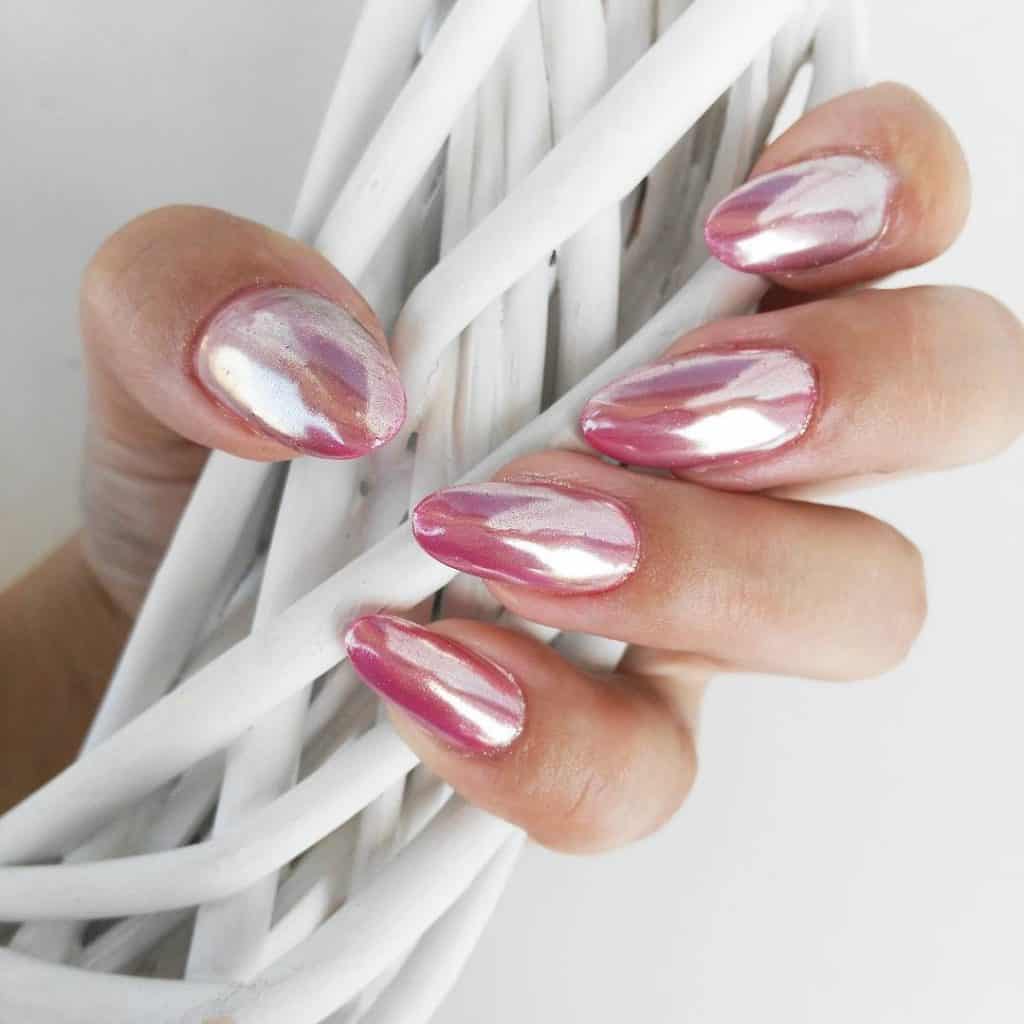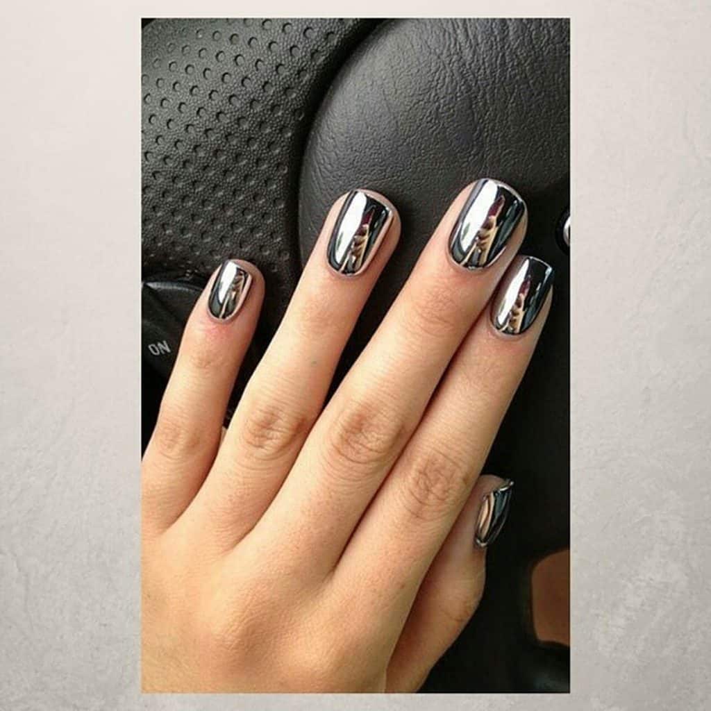 Pokrycie płytki paznokcia z lustrzanym odcieniem nigdy nie pozostanie niezauważone. Świetnie prezentuje się w każdym projekcie i pasuje do każdego stylu ubioru, co czyni go uniwersalnym. Takie lustrzane paznokcie powalają każdego, kto lubi konkretne i odważne stylizacje. Oczywiście czołowe pozycje zajmują kolory srebrne i pozłacane. Ale eksperymentując z innymi kolorami możesz stworzyć jeszcze efektowniejszy manicure. Najczęściej lustrzane paznokcie wykonuje się w technice hybrydowej.
