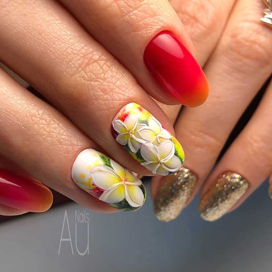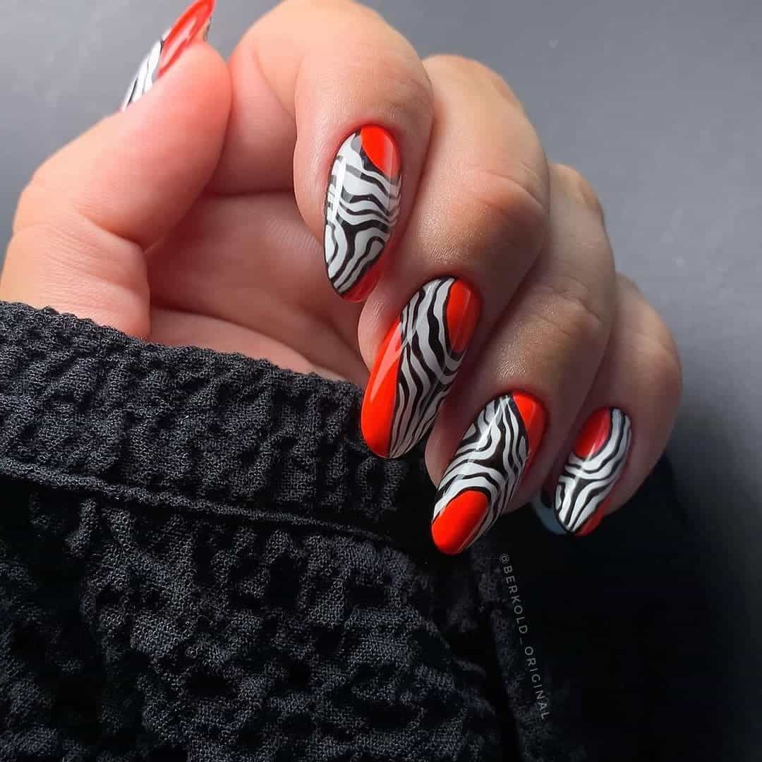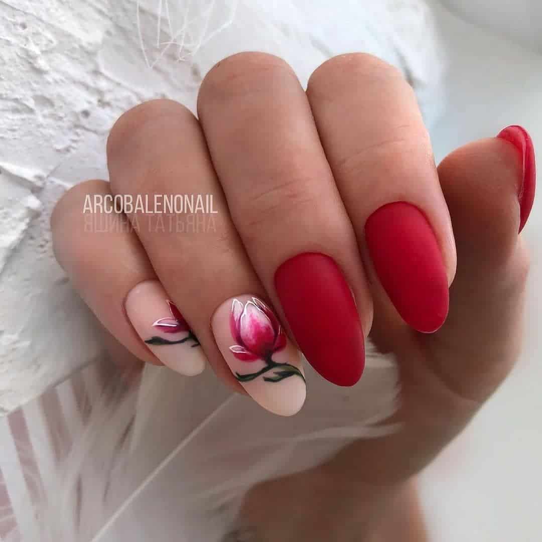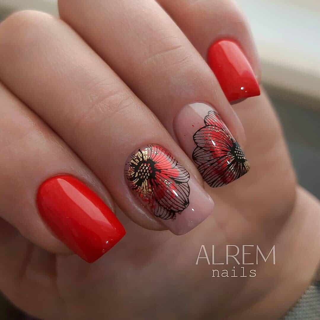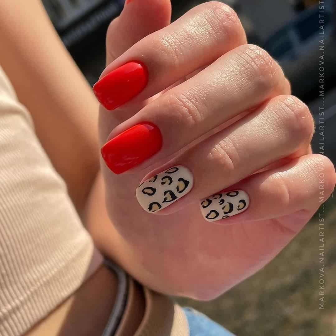 Jakie wzory są najlepsze na czerwony manicure wielokolorowy, z dodatkami i ozdobami? Naszym zdaniem świetnie spisują się stylizacje ze zwierzęcymi wzorami. Czerwień jest odważna i dzika, właśnie tak samo jak np. paznokcie w cętki pantery. Zaś czerwone paznokcie z kwiatami nieco łagodzą charakter czerwieni i są bardziej kobiece i delikatne. Zajrzyjcie do naszej galerii, w której znajdziecie wiele takich i innych pomysłów na połączenie czerwieni z innymi kolorami we wzorach na paznokcie.