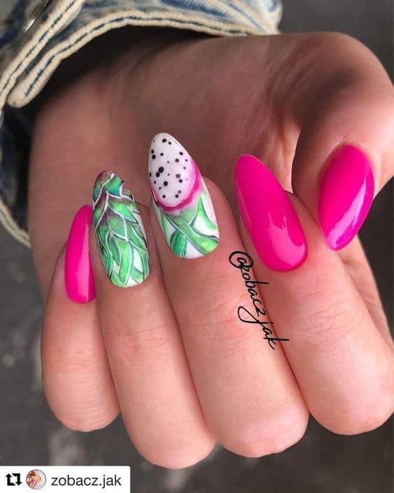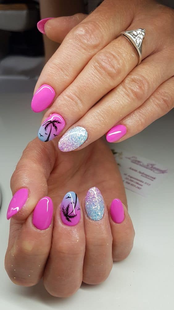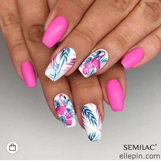 Nasze propozycje znajdziesz poniżej. Nie bój się szaleć z wzorami, naklejkami na paznokcie i kolorami. Dobra stylistka nie pozwoli Ci przesadzić, a w końcu pozbędziesz się limitów. Wzory na wakacyjny manicure mogą być bogate w piękne, artystyczne palmy i flamingi, ale jeśli na co dzień jesteś ograniczona np. przez pracę do paznokci nude to świetną odmianą mogą być po prostu żywe odcienie różu czy czerwieni.