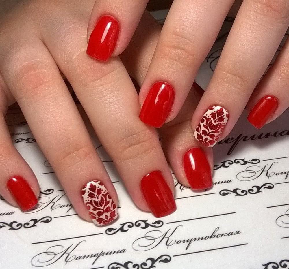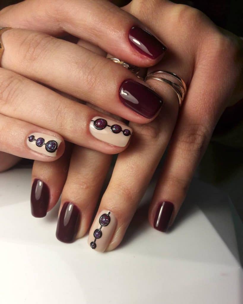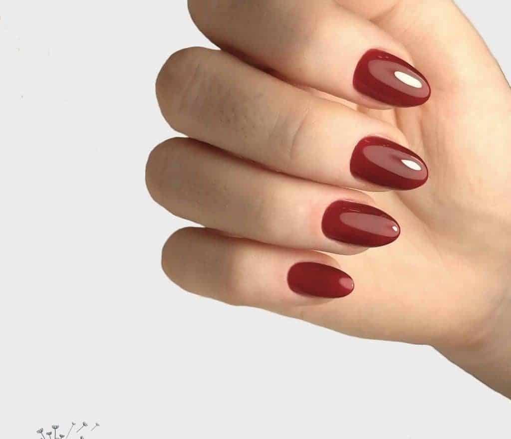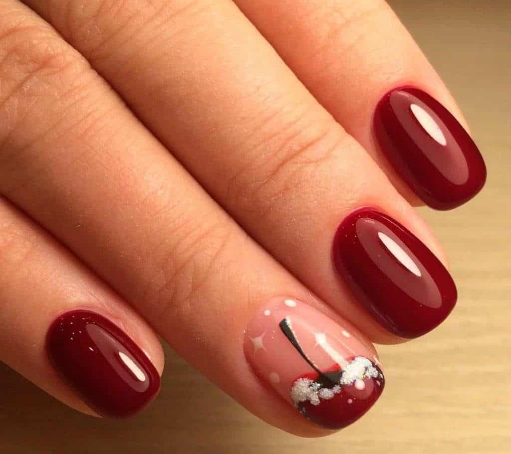 Wiśnia jest dość jasna i szlachetna, dlatego nie należy jej uzupełniać innym kolorem ani zbyt bogato elementami dekoracyjnymi. Manicure ten doskonale pasuje do każdego wyglądu, różni się jedynie elementami zdobienia, a także pasuje do każdego kształtu paznokci.